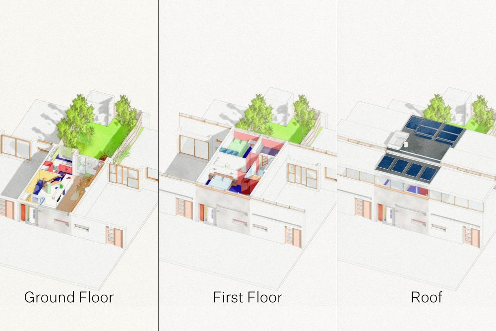 In London Fields, a house with a sunken snug is now on site. The extension opens sideways and back into the garden, and a simple drop in level creates a place you settle into rather than pass through. It’s also fully insulated, solar-powered and running on an air source heat pump — all built in, none of it shouted about.
