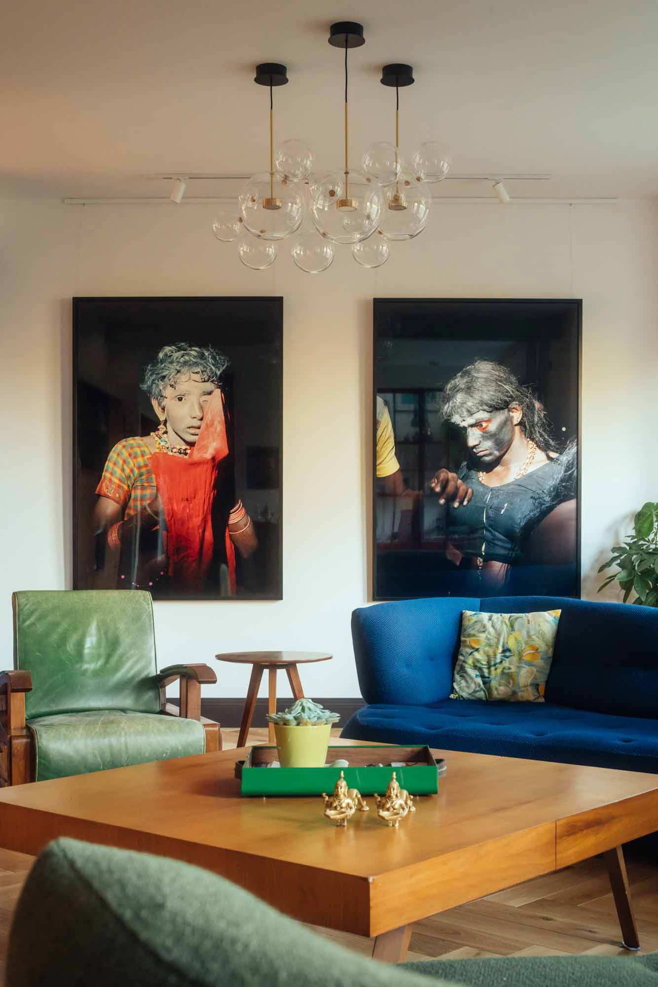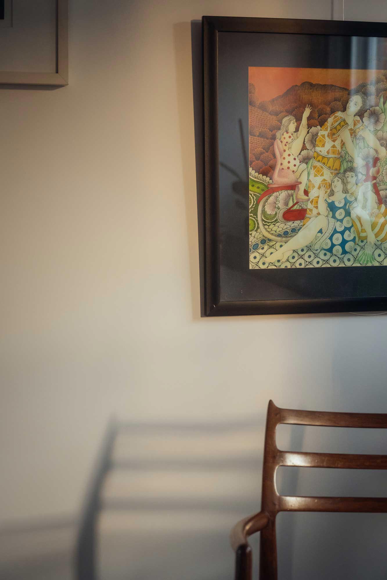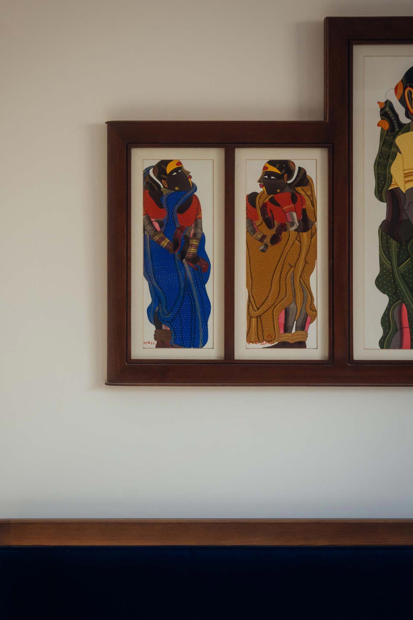 We were struck by Gautham and Sreeja’s artworks the moment we walked into their house. They were a key part of their identity and became pivotal to our initial conversations. They also became the foundation for selecting the colours throughout their home, as we took pictures of the artworks and created a mood board, with groups of artworks inspiring the colour palette of each room.