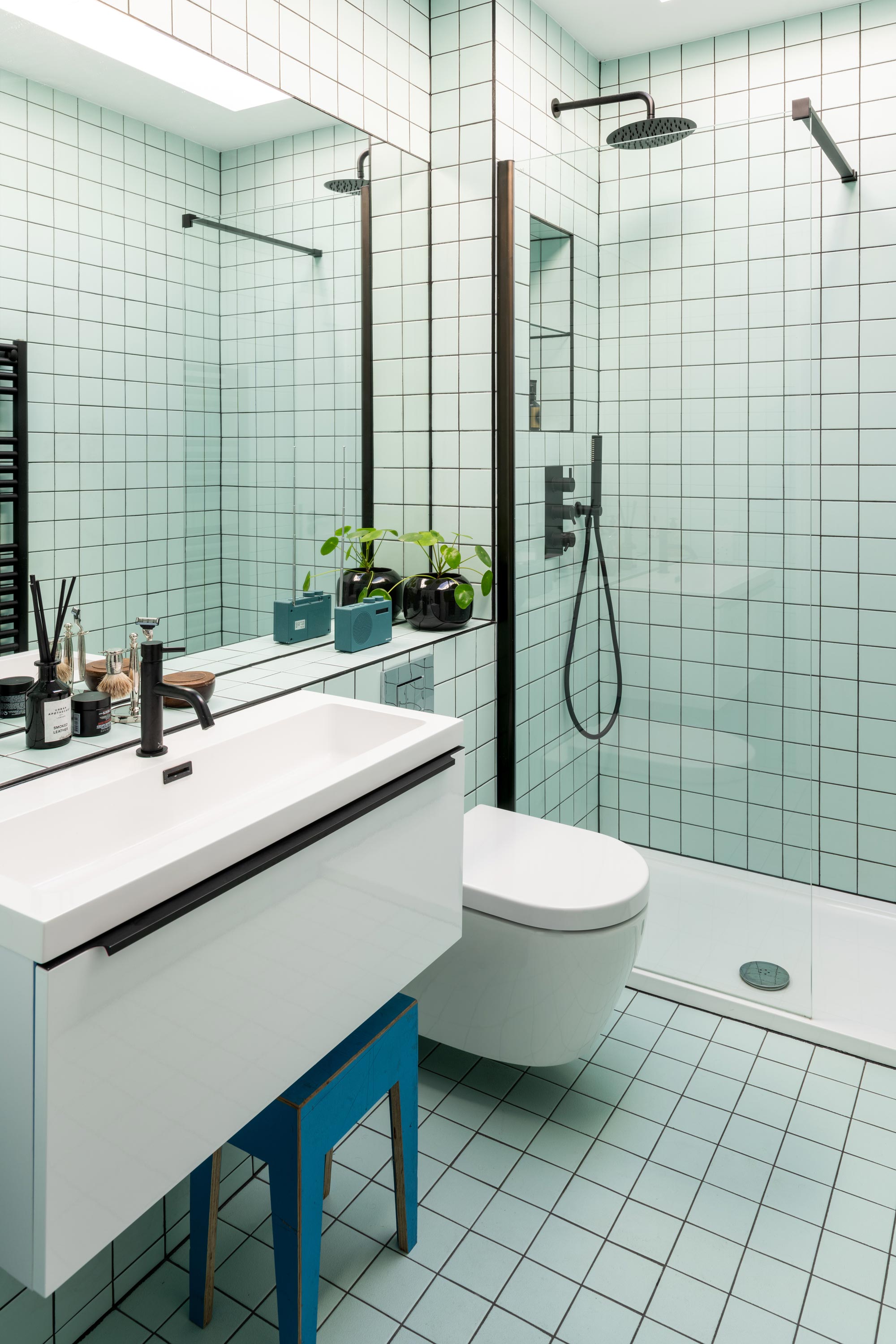 Upstairs, a new bathroom was accommodated behind the existing bedroom, meaning the first floor extension stepped out in a similar manner to the ground floor extension, giving the two floors and the whole rear elevation a dynamic brick layering that overlooks a new wildflower roof and the new garden below.
