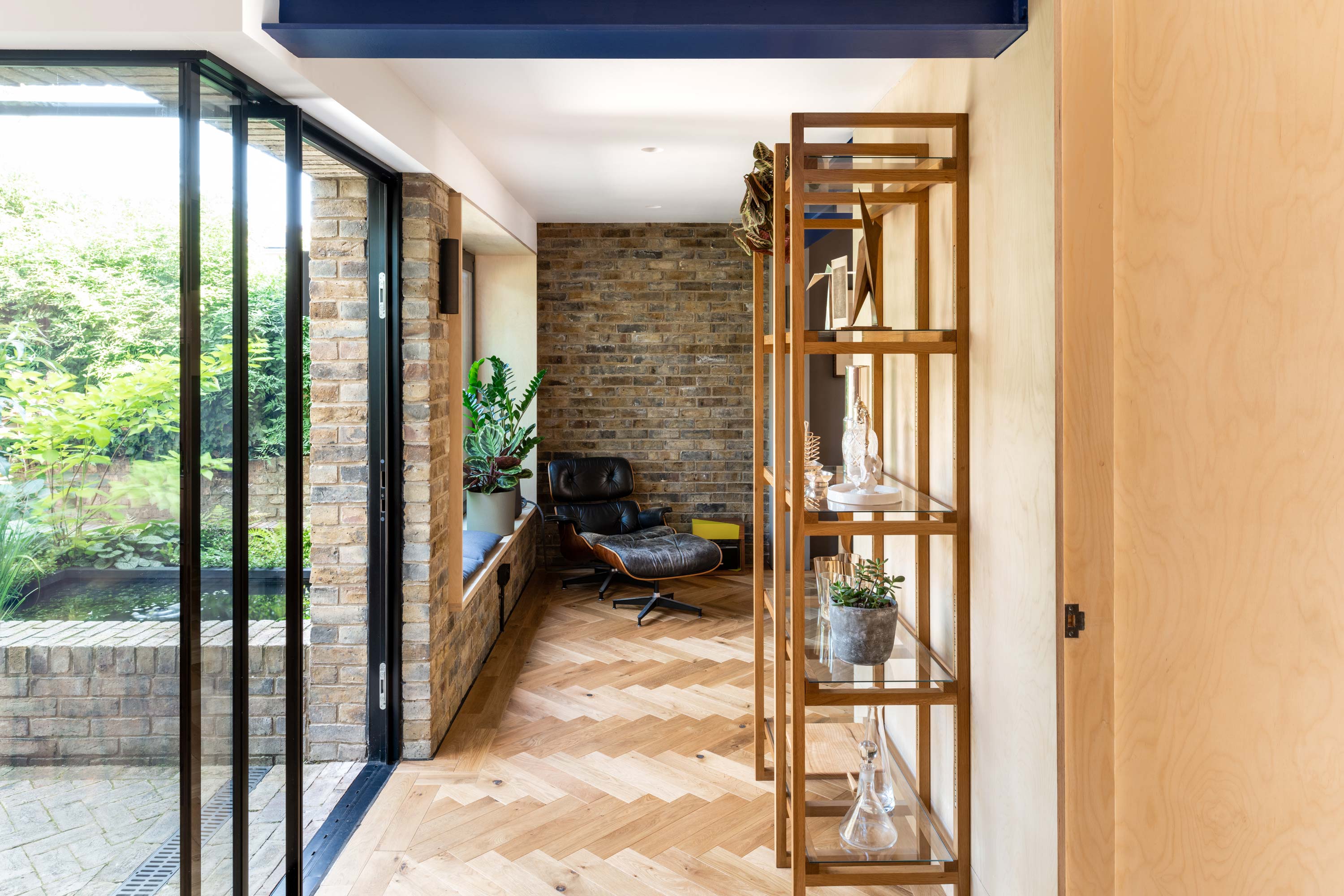 The stepped extension meant that the rooms along the rear of the building could fold around the garden and the garden folds around them. The external walls were punctuated with varying openings, including a piece of corner glazing, which removes a heavy solid corner to open up the space, bring in daylight and provide views to the planting. The edges between the garden and the house are blurred, especially at the window seat, which allows Gareth and Richard to sit in the warmth of their home but feel like they’re sitting in the garden space, no matter the time of year.