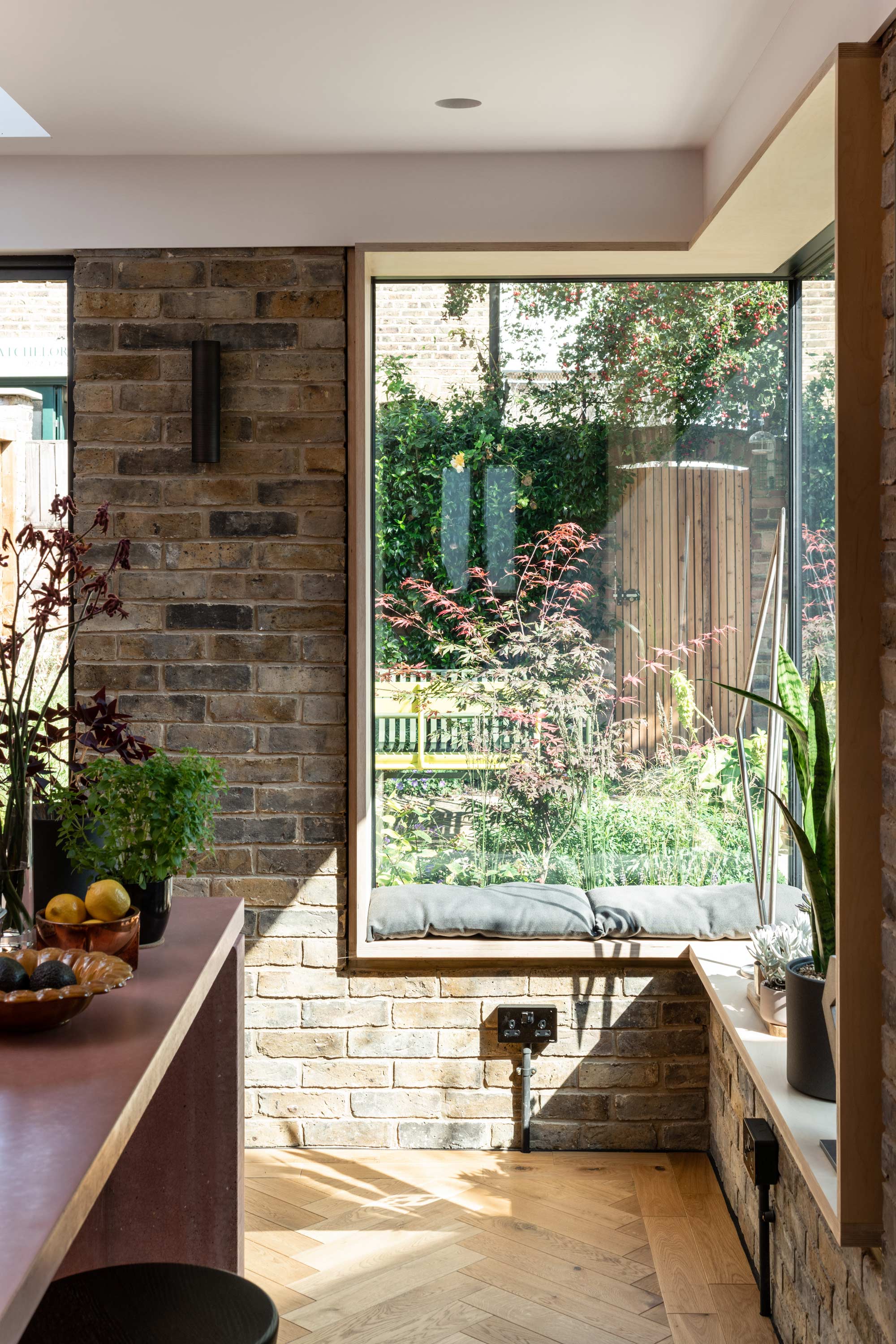 ‘Bringing the garden right up to the window works really well. I love being able to sit in the window whatever the weather. When it snowed this year, we were able to sit inside and watch the snow falling all around us. Because of the window seat there is much more engagement with what is going on outside.’ Richard