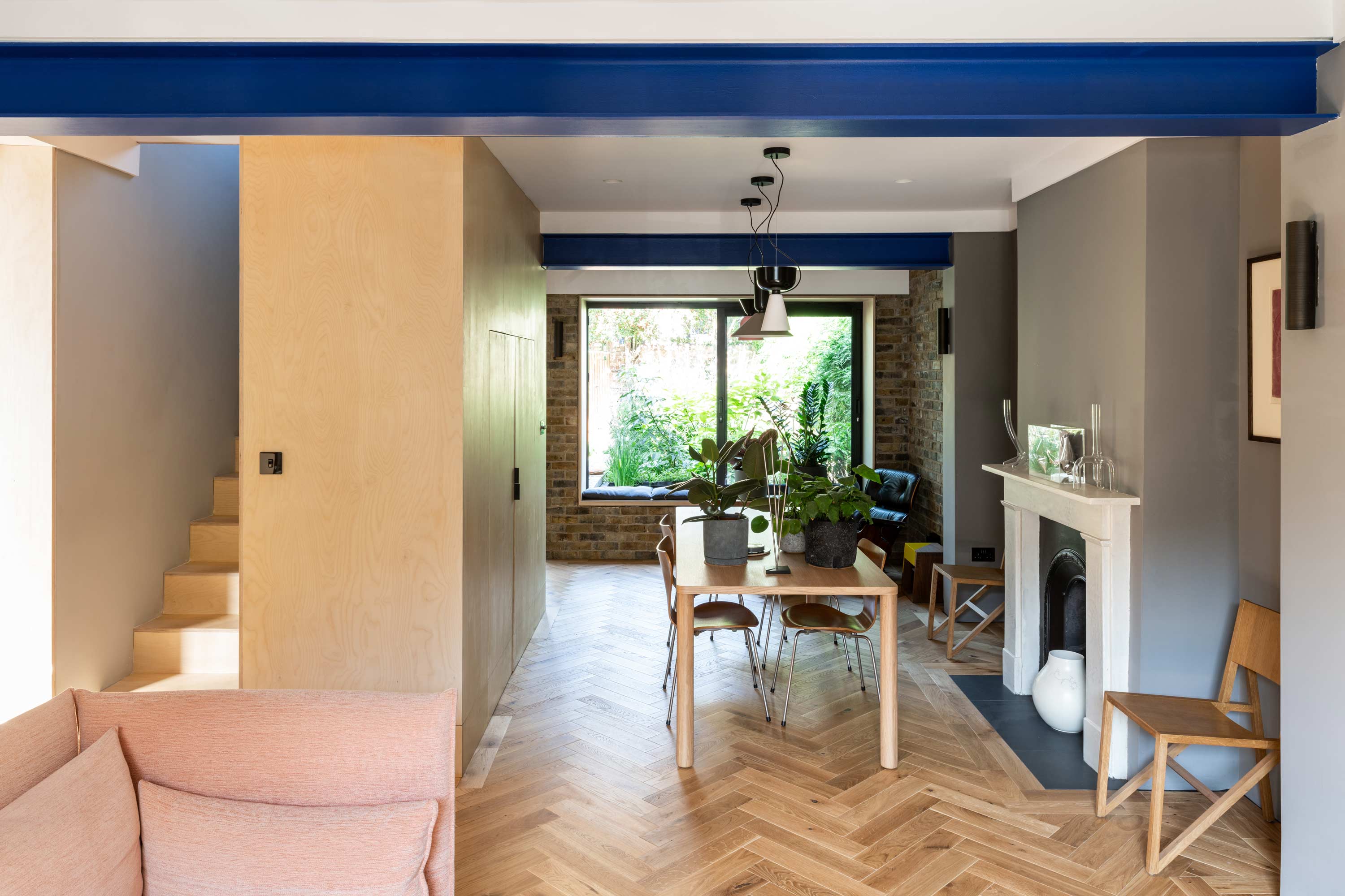 The craftsmanship of the build had to be exemplary with not much opportunity for covering up. This included the bare birch ply stair and the utility ‘objects’ that sit in the main space of the ground floor as well as the highlighted Yves Klein blue exposed steels that show how the building is supported where structural walls were removed.
