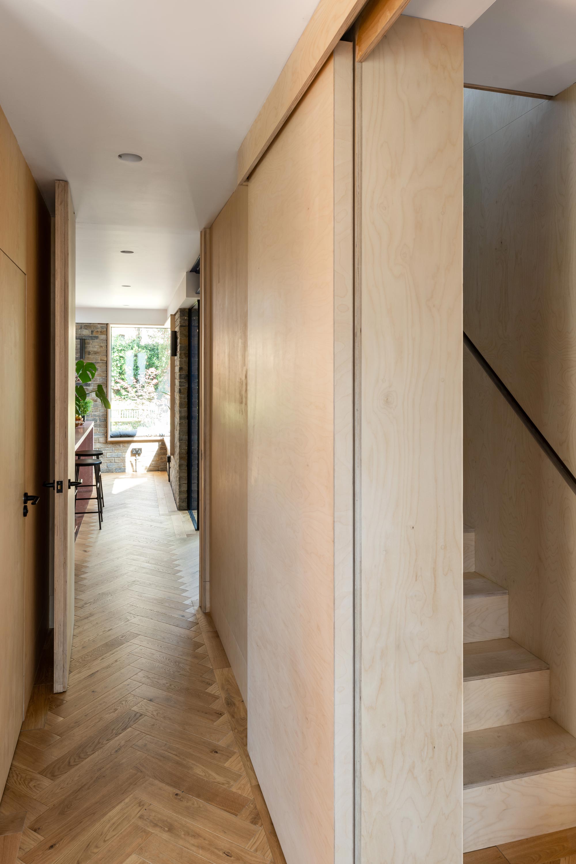 The front of the house stayed largely intact on both floors to make use of the good traditional proportions and layout. The new stair, utility and cloak area on the ground floor were positioned as ‘objects’ within the overall space. This helps the ground floor to flow easily towards the new kitchen and through the front living space and provides views to the garden throughout this floor.